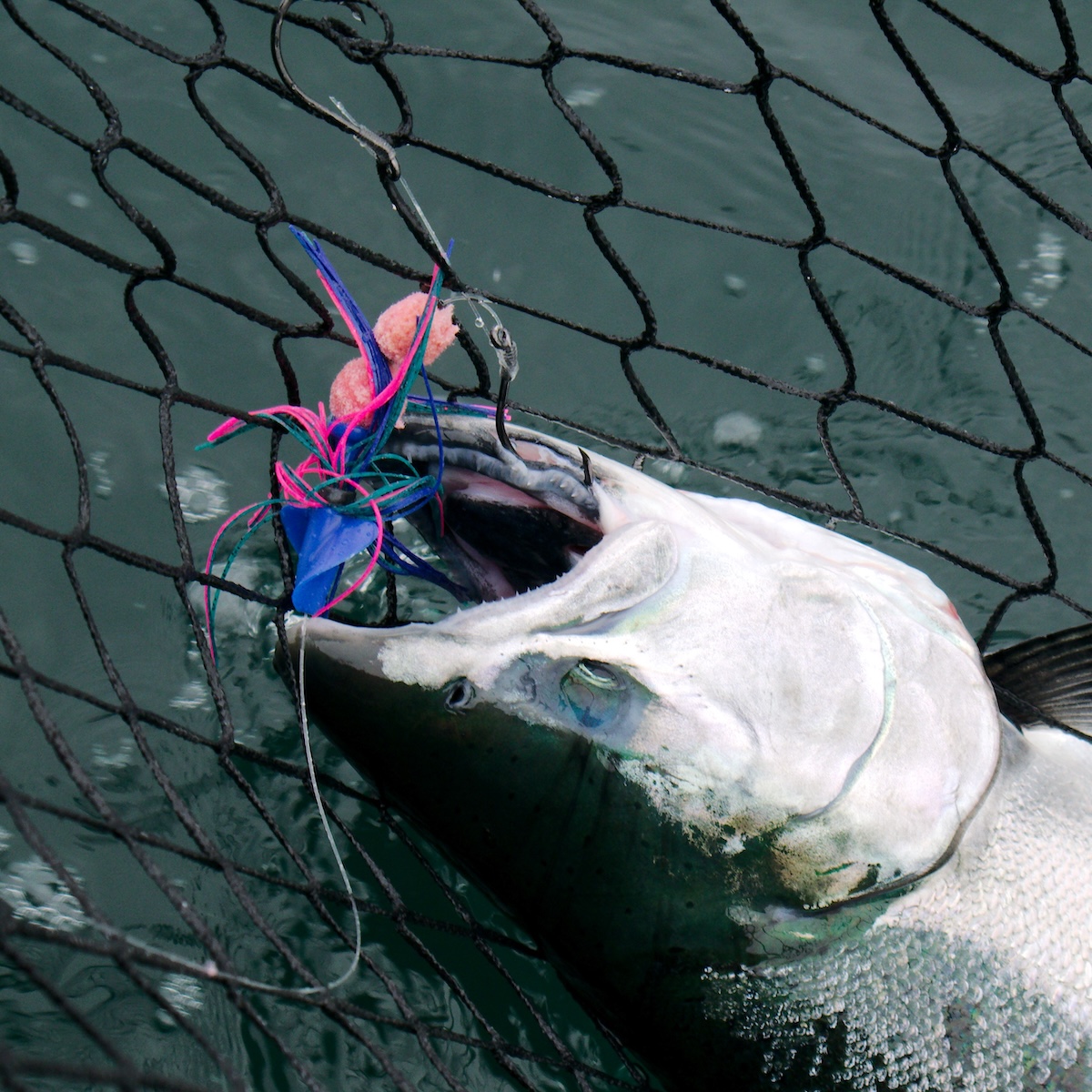 Designed and tested in Southeast Alaska, Skirted Vortaks combines a wounded‑baitfish spiral with high‑visibility skirt materials to keep salmon engaged through changing tide, speed, and light.